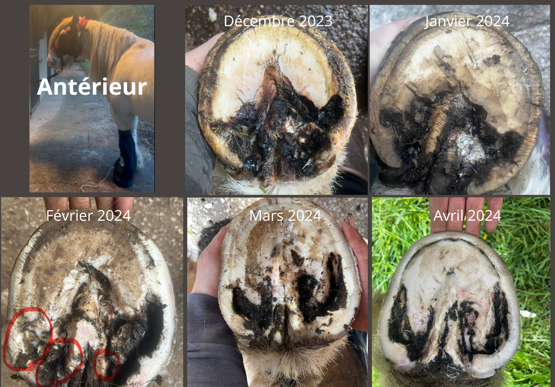 Die hier vorgestellten Pferde leiden seit mehreren Jahren an Hufkrebs und wurden bereits mit verschiedenen Methoden behandelt. Einige von Ihnen wurden sogar operiert (Drainage, Entfernung von nekrotischem Gewebe usw.), und dennoch kam es zu Rückfällen.