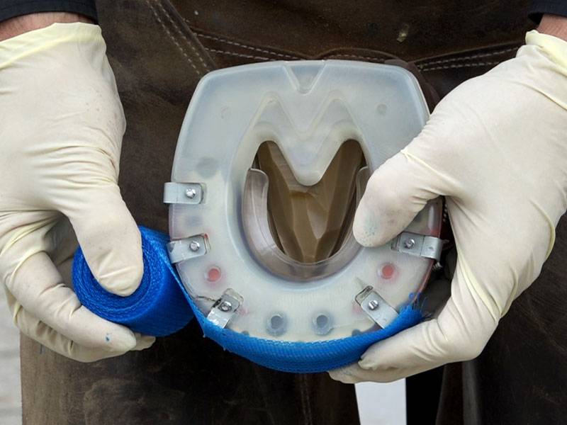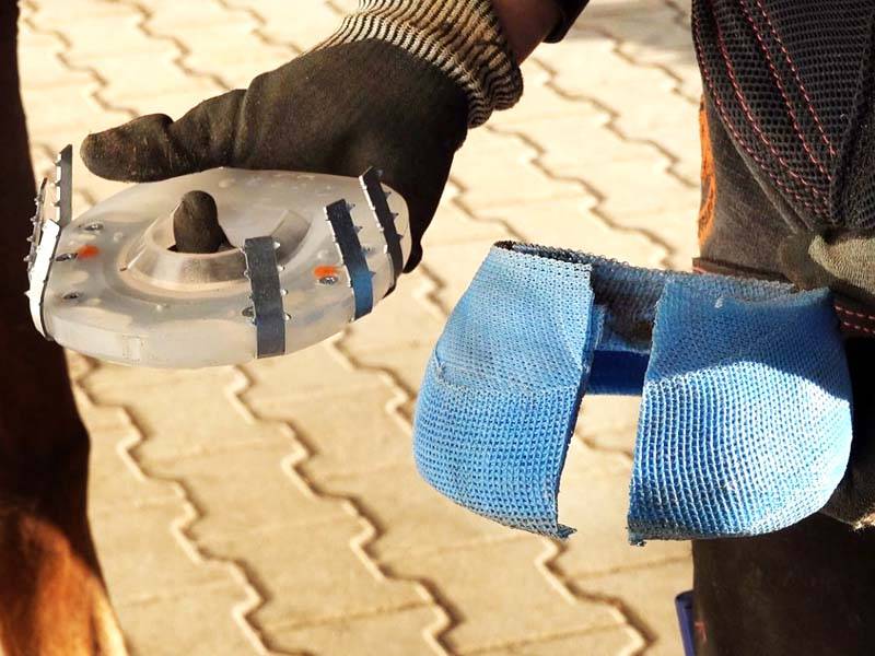 In practice, situations often arise where both a hoof bandage and a horseshoe system are required. The cast bandage can be used: