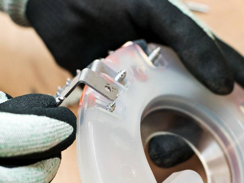 Mounting the Crochets Résine onto the shoe.