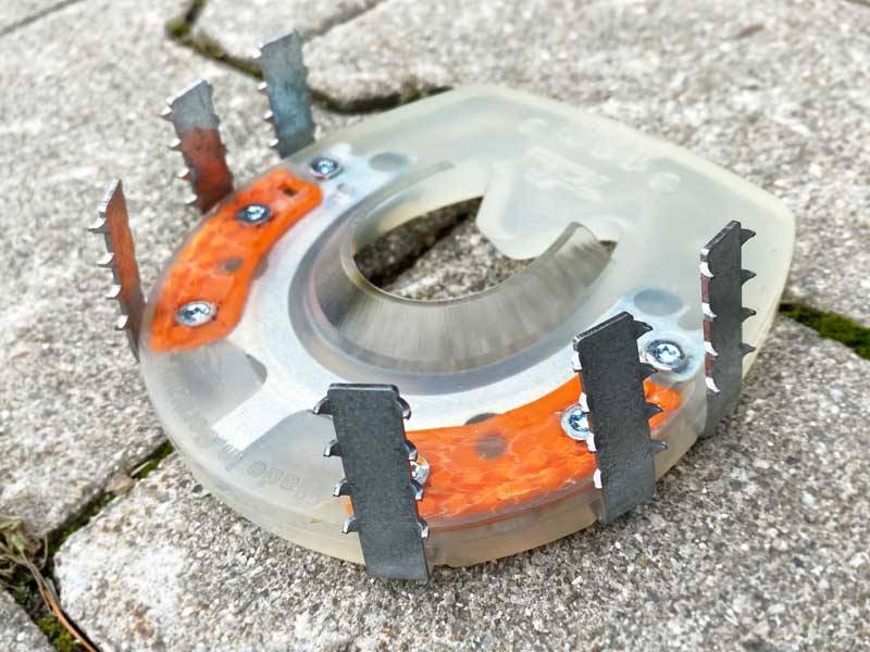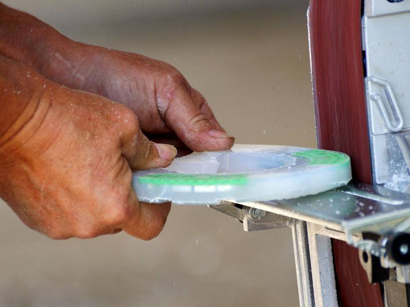 Adjusting the alternative shoe using a grinder.